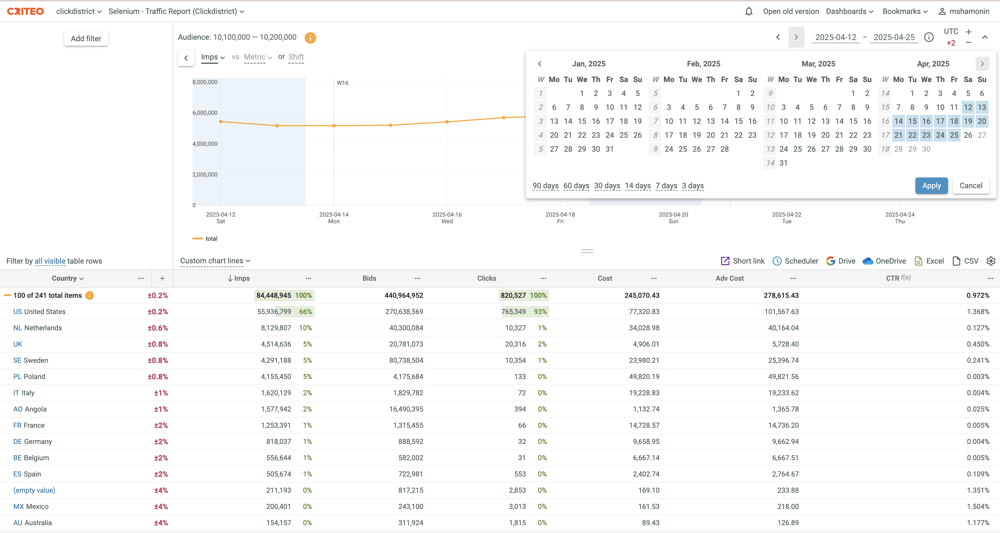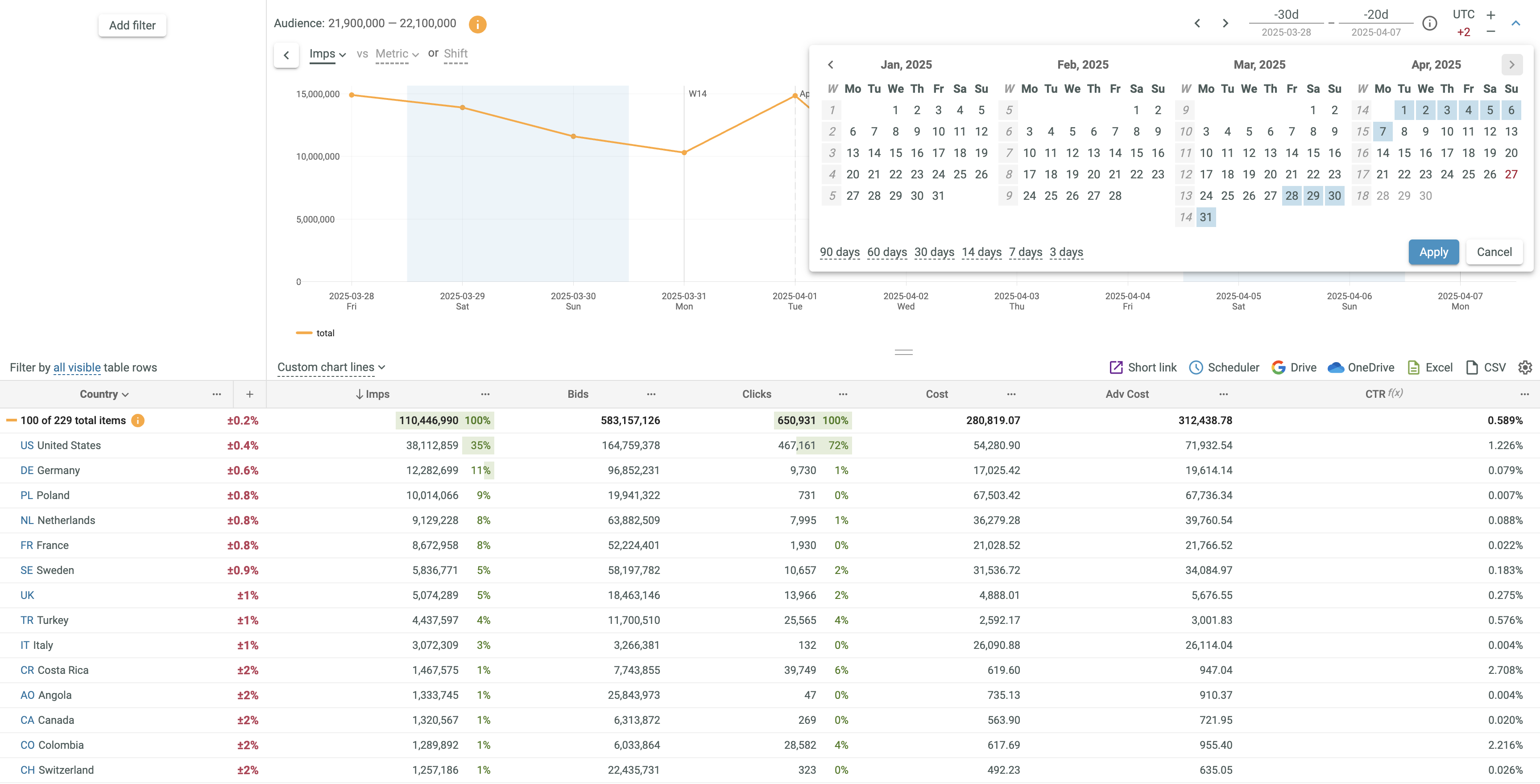 - Click the corresponding shortcut: 90 days, 60 days, 30 days, 14 days, 7 days or 3 days.