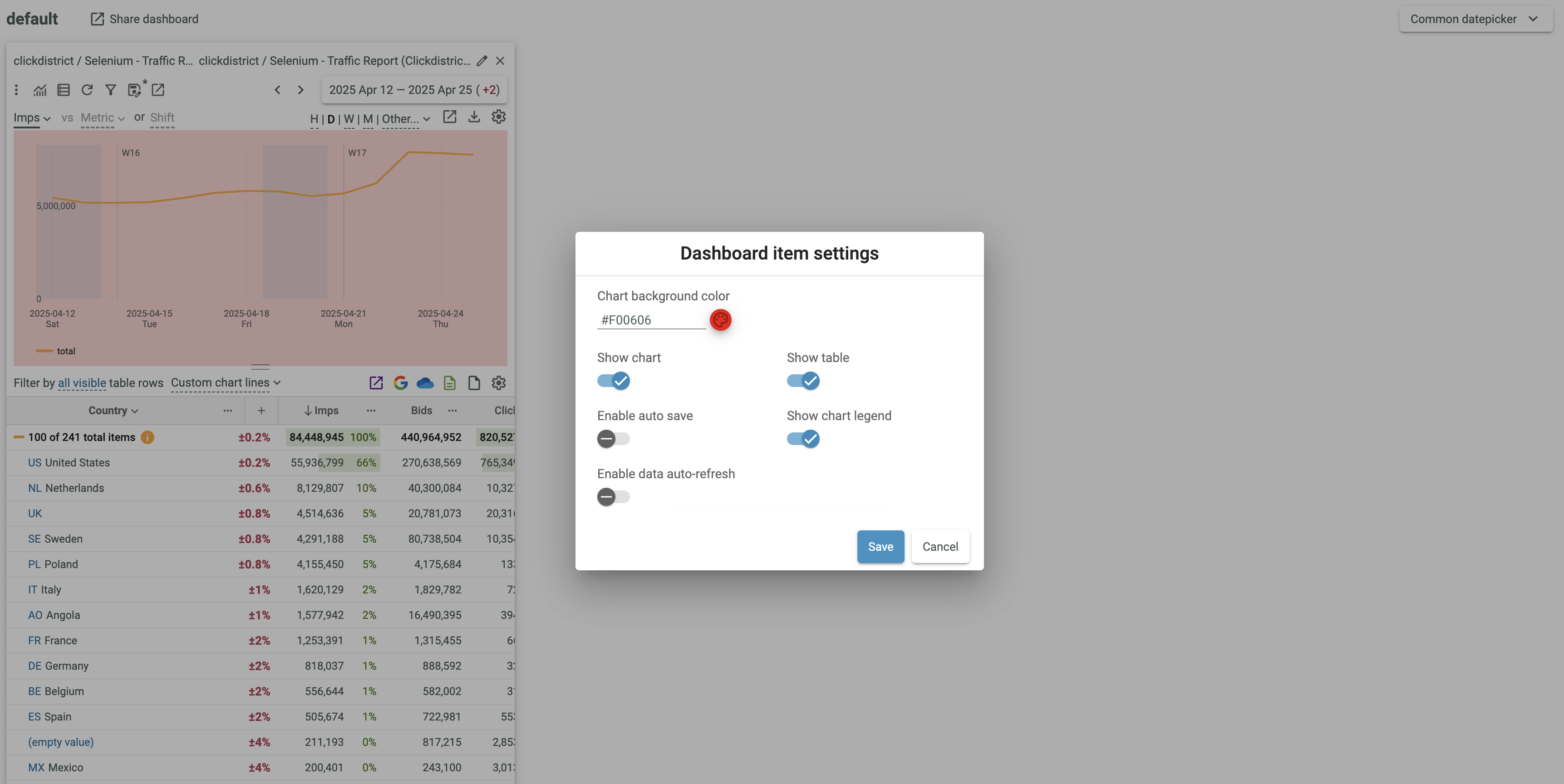 - Enter the desired chart background color into the Color box or click the Change chart background color