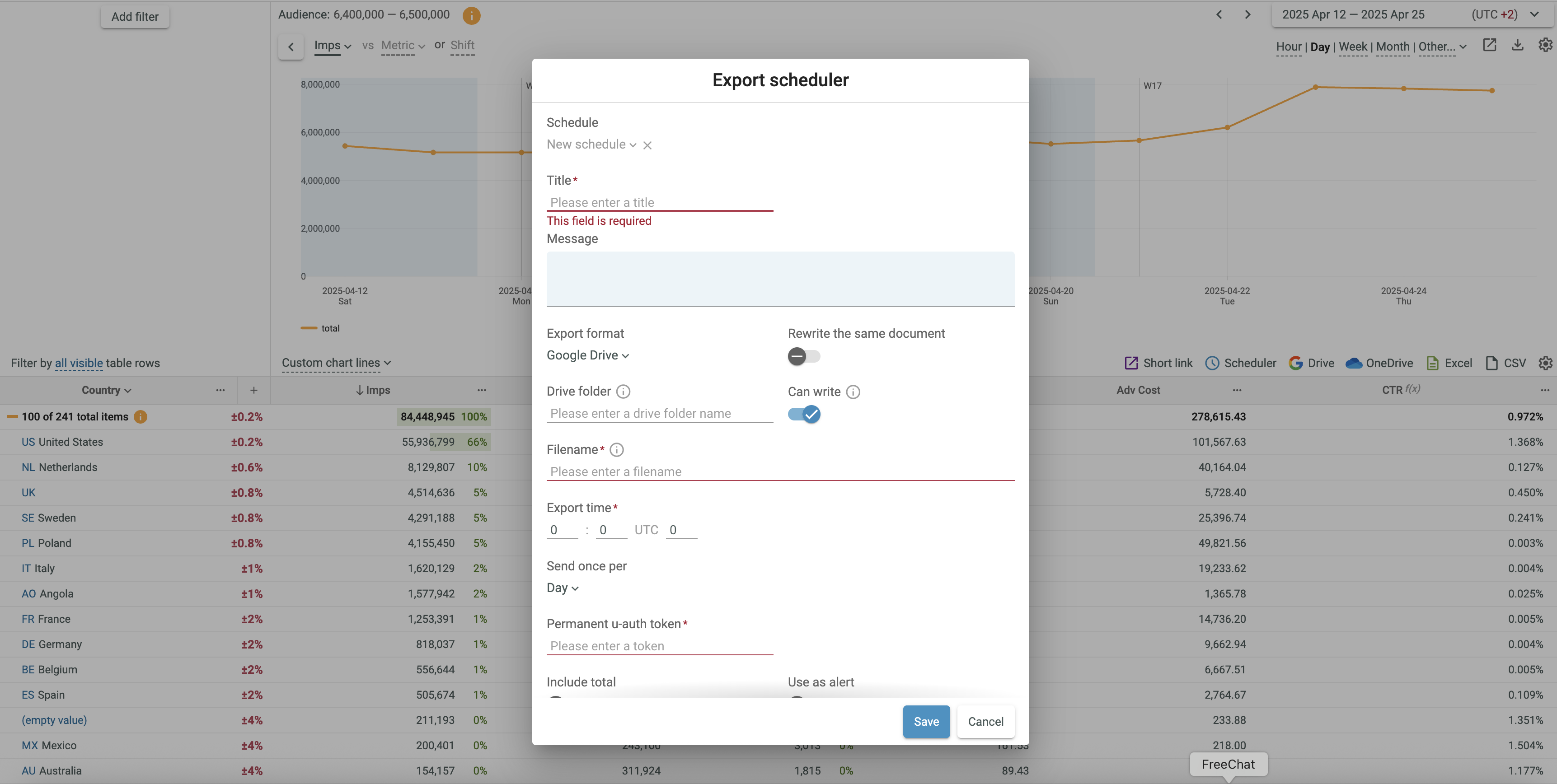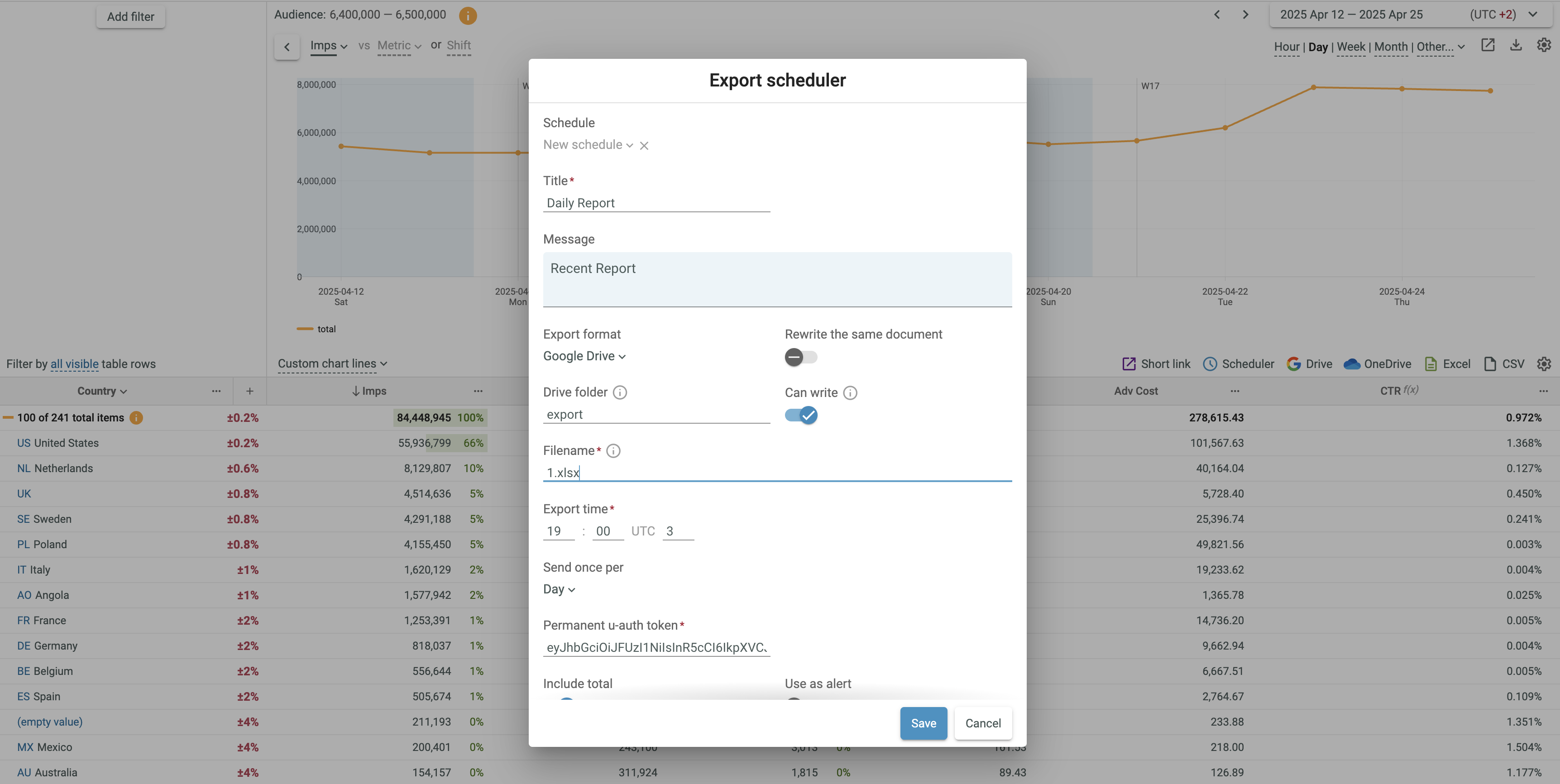 - Enter your Permanent u-Auth token or select the Last used token option if you have already created a report earlier.